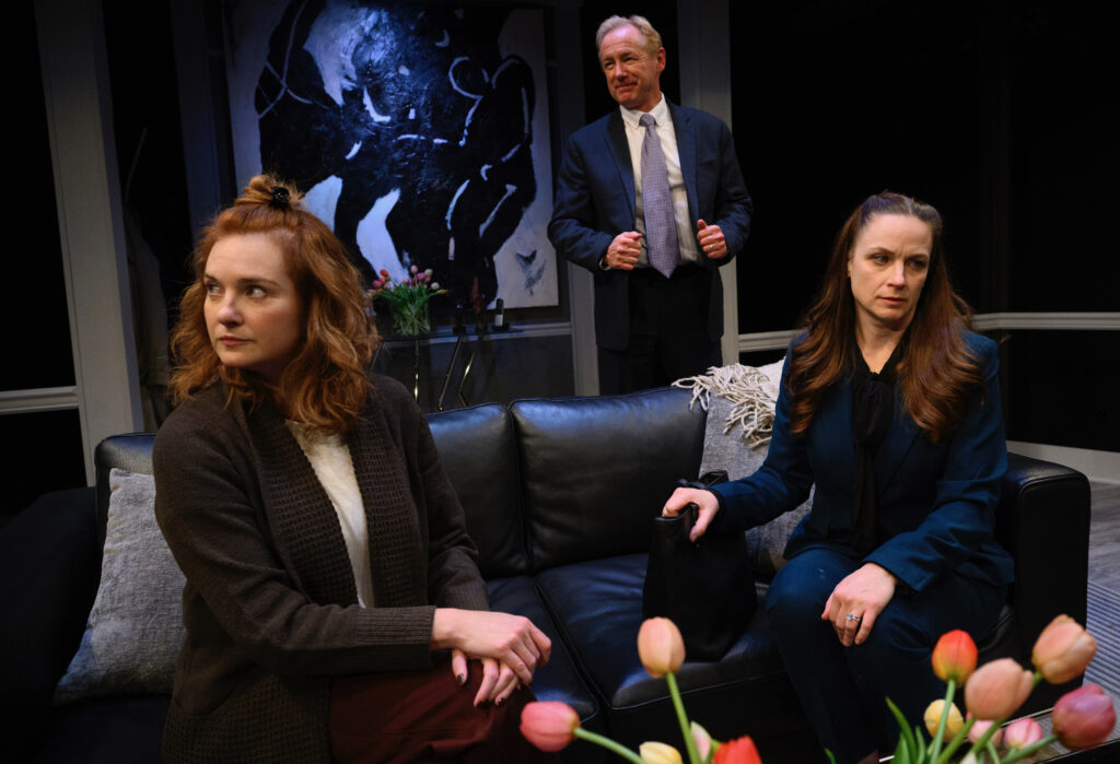 The first thing you notice about David Whalen’s character Alan is that, for a lawyer, he’s not as cutthroat as he would be in this country. He is, at least in the beginning, quite reasonable; almost polite. Mr. Whalen is one of those rare actors whose physical immersion into a role is complete, yet not tendentious or inflated. His is a quiet intensity that lulls you with understatement until something more is called for and, when it is, he can pivot with ferocity without foreshadowing it. Furthermore, he has a way of weaving his dialogue into the flow of a scene that allows him to step on another actor’s line the way we do in real life, without the false beat of ellipsis points that signal recitation, not reaction.