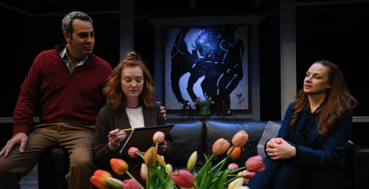 Playing his wife, the repressed Annette, is Gayle Pazerski who has – without giving the crux of the action away – the most demonstrative role in the show. She’s a woman trapped in a pantsuit with one of those corporate bow ties that went out in the 1980s, but she’s too afraid to relinquish the authority of this look, thinking it gives her gravitas, when it’s really a sign that she’s being strangled by the inattention of her workaholic husband, who is more in love with his cell phone than her.