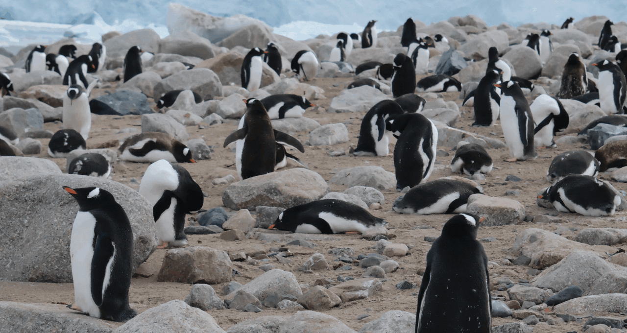 We trekked an icy hill and were rewarded with a magnificent view: Snowy mountains looming over a vast, blue-tipped ice wall and inky seas. In the foreground were penguins, so many adorable and flightless birds scooting about on their guano-marked hill.